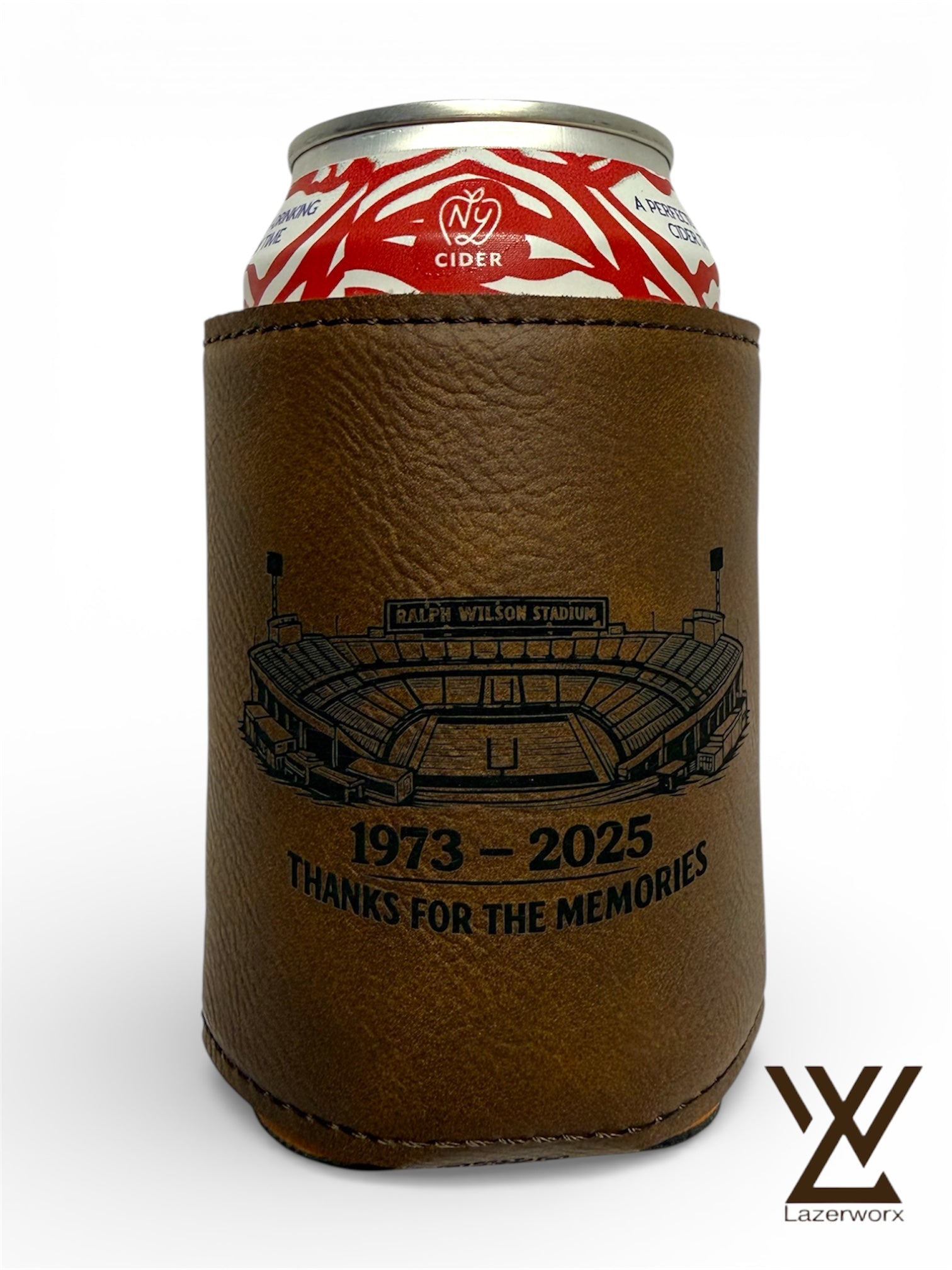 Created to mark the final game ever played in this iconic stadium, this can holder is a tribute to decades of unforgettable moments, loyal fans, and timeless memories. The rich brown leatherette engraves beautifully, giving the design a bold, permanent contrast that will never fade.